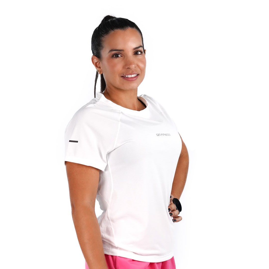 Está diseñada para acompañarte en cada entrenamiento con frescura, comodidad y estilo. Su tela ligera y transpirable favorece la ventilación y el secado rápido, manteniéndote fresca incluso en las rutinas más intensas. Ideal para running, gym o cualquier actividad física.