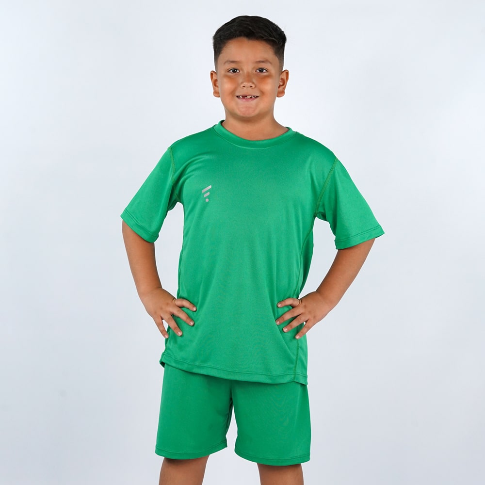 Prepara a los pequeños campeones para darlo todo en la cancha con este uniforme deportivo diseñado especialmente para niños. Incluye camiseta y pantaloneta, confeccionadas en tela liviana, fresca y de secado rápido, que brinda total libertad de movimiento y comodidad durante el juego. Ideal para entrenamientos, partidos escolares o juegos recreativos.